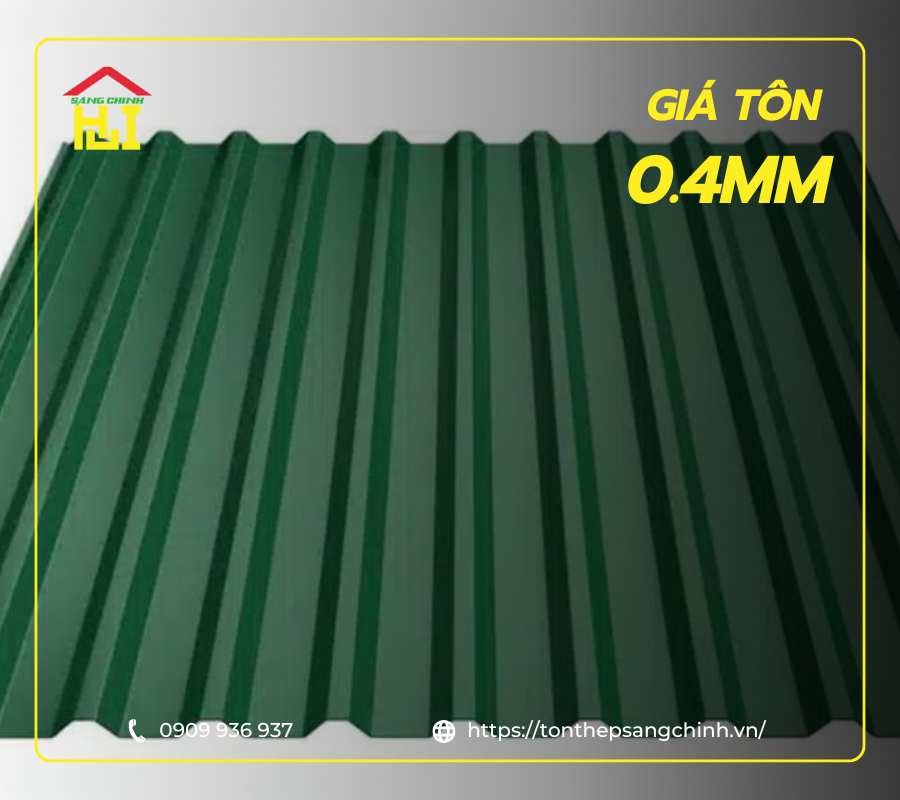 Tôn 0.4mm là loại vật liệu lợp hoặc ốp có độ dày danh định là 0.4mm. Thường được sản xuất từ thép cán nguội và phủ các lớp bảo vệ như mạ kẽm, mạ hợp kim nhôm-kẽm (tôn lạnh) hoặc sơn màu tĩnh điện. Đây là một trong những độ dày phổ biến nhất trên thị trường, được đánh giá là có độ bền tốt, dễ thi công và có giá thành hợp lý.